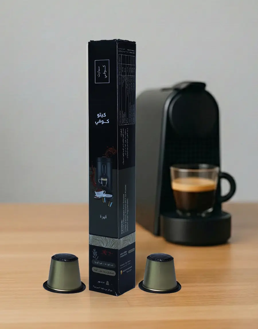 Espresso coffee to support fat burning, suitable for a keto diet, a blend of espresso coffee prepared with healthy fats, in an easy-to-prepare capsule compatible with Nespresso machines.
